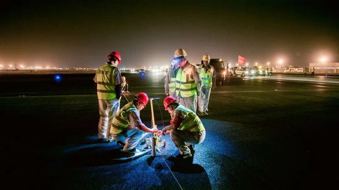 现场24小时不停航施工,管理人员、施工人员轮班坚守,通过合理分区、分段施工,以平均每天完成2.4万平方米的速度,保质保量“跑出”项目建设“加速度”——仅用15天就通过不停航施工完成了所有施工任务。10月17日顺利完成校飞验证,10月17日正式投入运行,比原计划提前3天圆满完成全部任务。