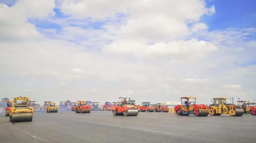 虹桥机场百年跑道完成第5轮沥青摊铺,500人团队“跑”出“加速度”