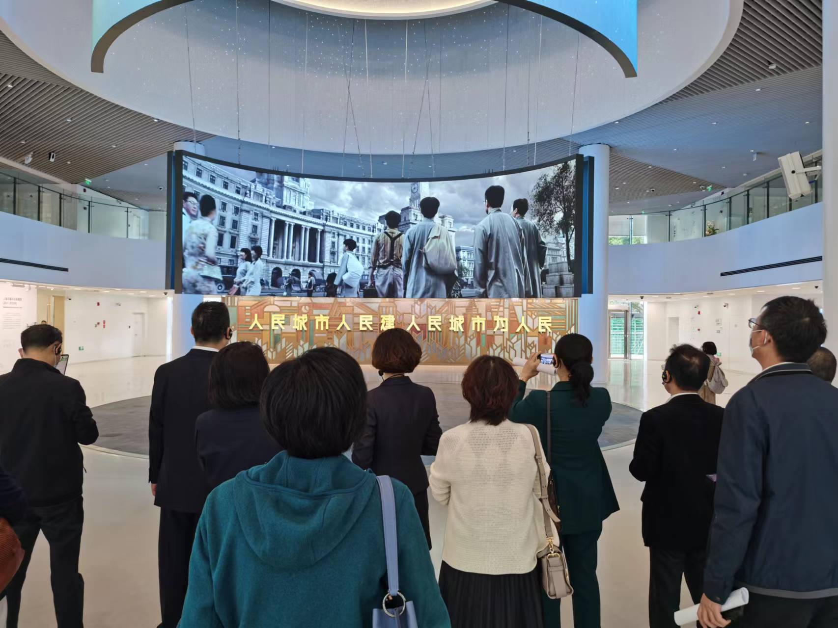 走进展示馆,代表们参观了以“上海:追求卓越的全球城市”为主题的展陈。其中,5D沉浸式城市数字模型运用数字孪生理念,替代原物理沙盘,构建了可交互的大型沉浸式混合现实场景,并融合数字化城市展示与分析模拟功能,成为了城市规划展示的“智慧大脑”。而“城市实验室”项目打造了目前国内首个基于真实地理信息数据的空间规划实验平台,市民可以直观感受到上海规划建设的美好蓝图。