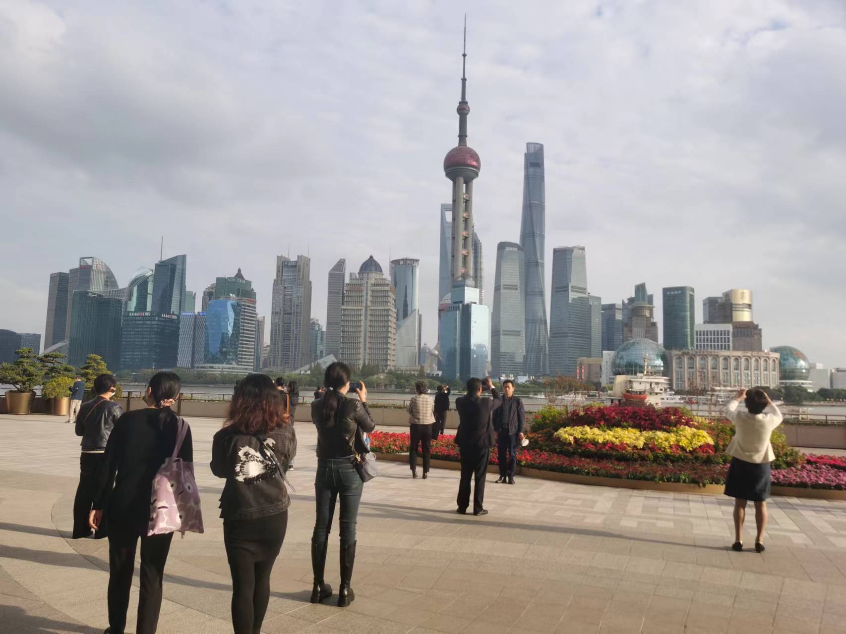 位于北外滩路8号的世界会客厅与外滩、陆家嘴共同构成了黄金三角。站在会客厅2楼的景观平台上眺望,往东是百年的老外滩,对岸是改革开放40年、浦东开发开放30年成果的展示,独一无二的美景引得代表们纷纷拍照留念。在这里,代表们听取了虹口区介绍北外滩区域更新进展情况。