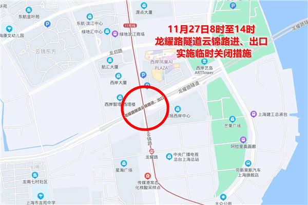 十一、11月27日8时至14时,龙耀路隧道云锦路进、出口实施临时关闭措施。