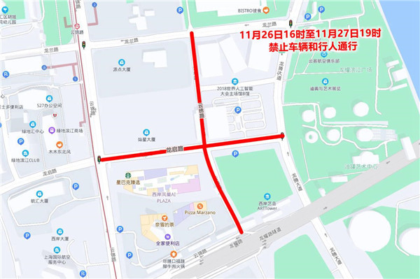 一、11月26日16时至11月27日19时,龙启路(云锦路—龙腾大道)、云绣路(龙兰路—龙耀路)禁止车辆和行人通行。