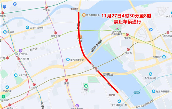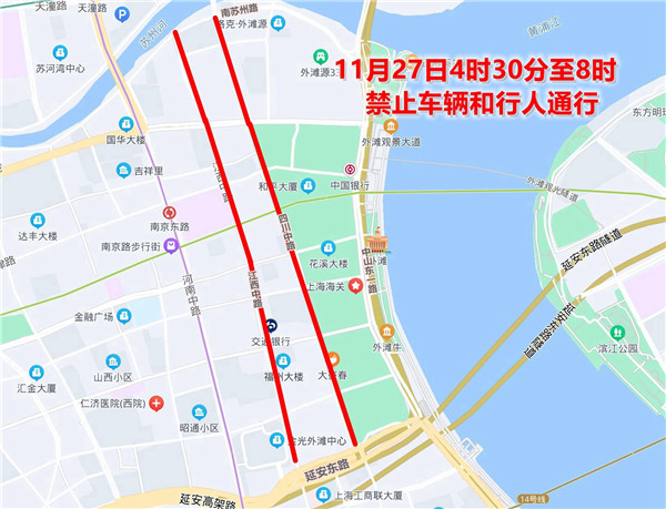五、11月27日4时30分至8时,中山东一路双向(外白渡桥—东门路)禁止车辆通行。