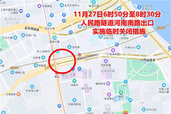 七、11月27日6时50分至8时30分,人民路隧道河南南路出口实施临时关闭措施。