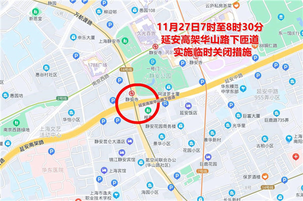 八、11月27日7时至8时30分,延安高架华山路下匝道实施临时关闭措施。
