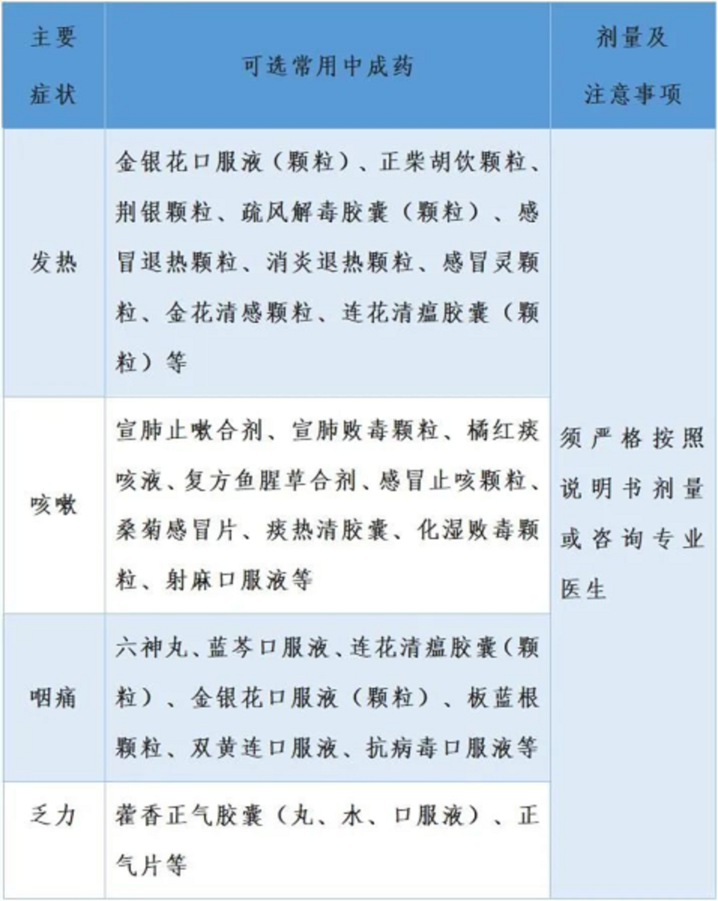 注意:上述对症干预中成药选择其中一个品种,按照说明书剂量服用或在医生指导下使用,一般3-5天或症状消失即停止用药。
