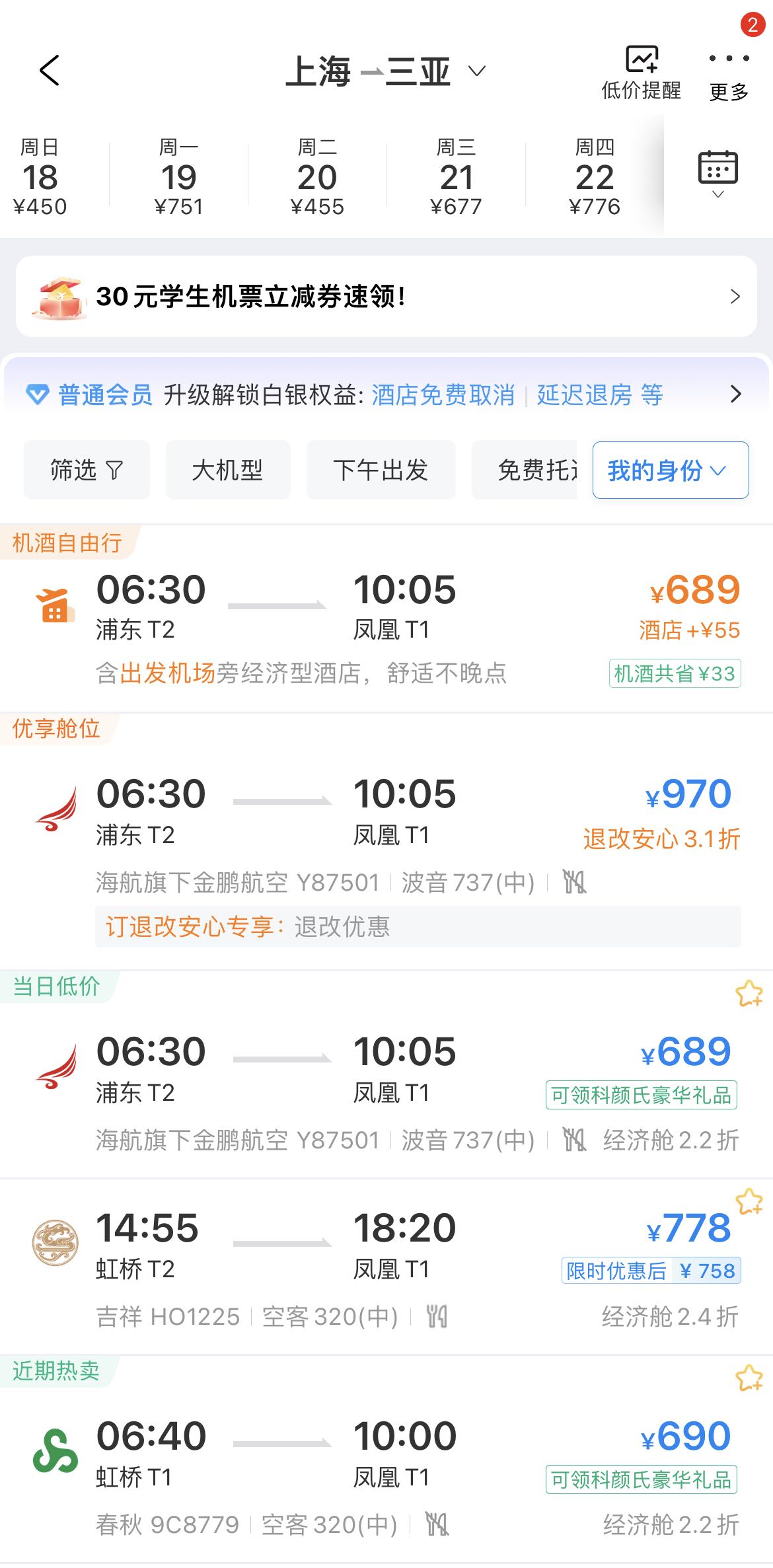 客流上升的同时,机票价格也在一路上扬,一些热门目的地的机票颇为抢手。例如,最近比较受捧的延吉、三亚等目的地,几乎都是一天一个价格。