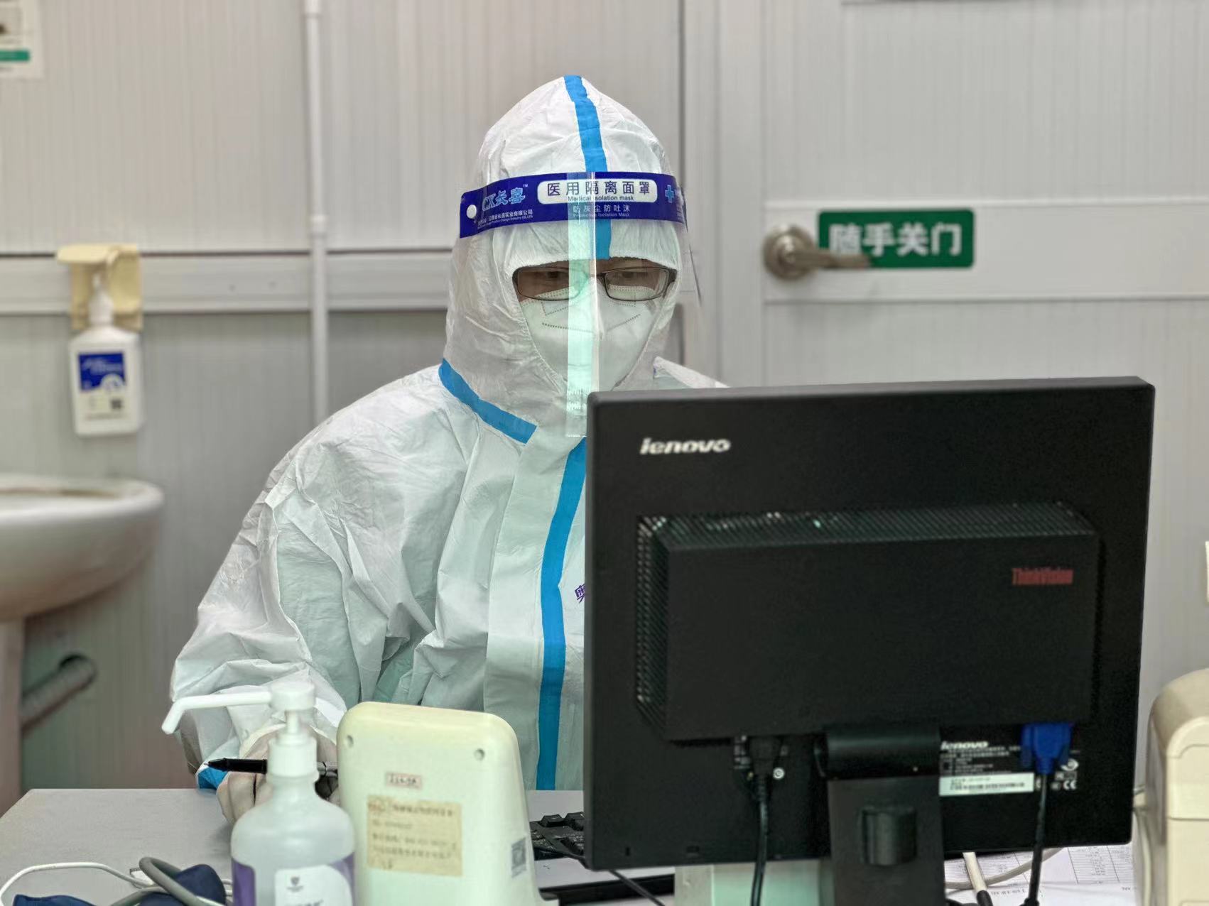 图:发热病人正在凌云社区发热哨点诊室就诊