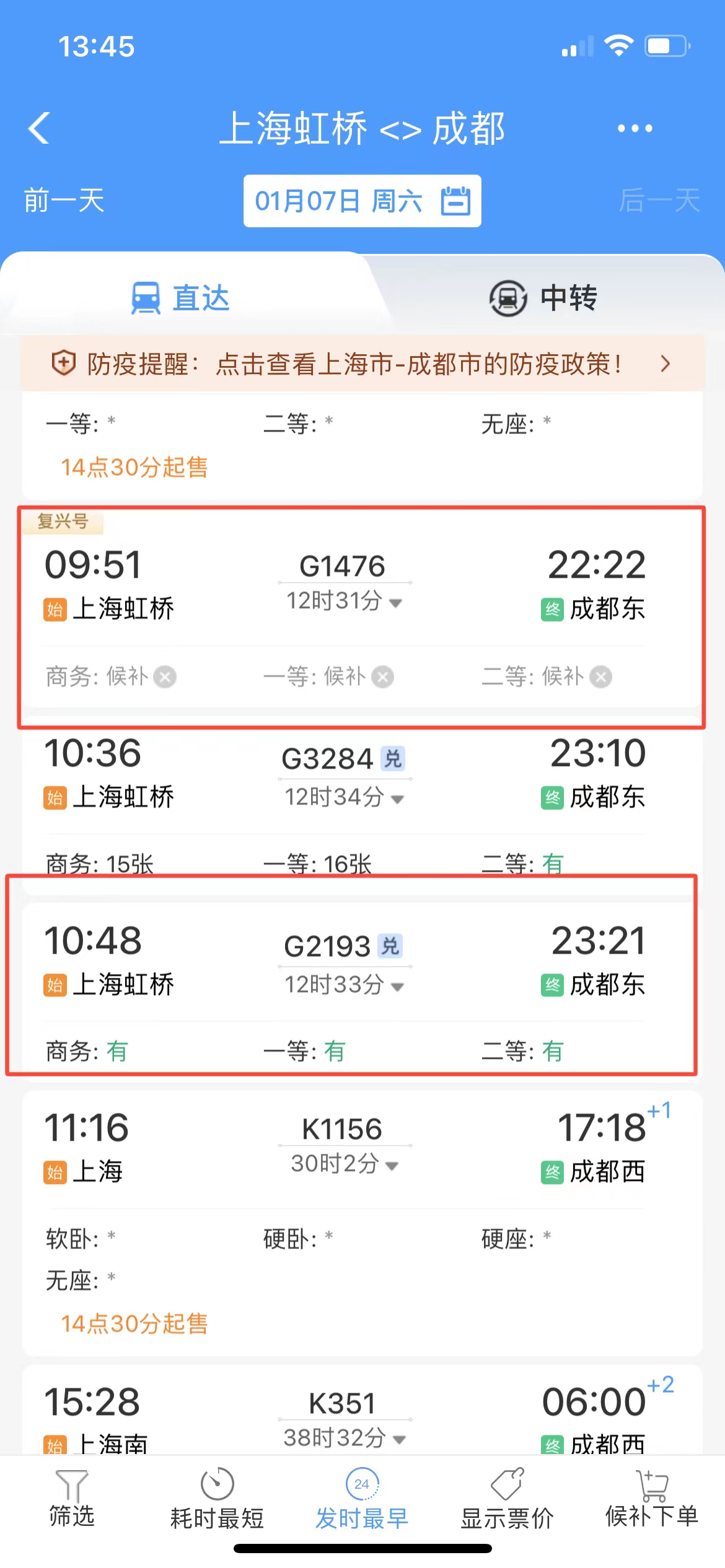 这一情况也出现在了贵阳和重庆等热门返乡目的地。至下午14时30分,上海站开售时,记者同样通过12306购票系统查询后发现,此前放票的上海虹桥站依然还有不少热门方向的车次留有余票。