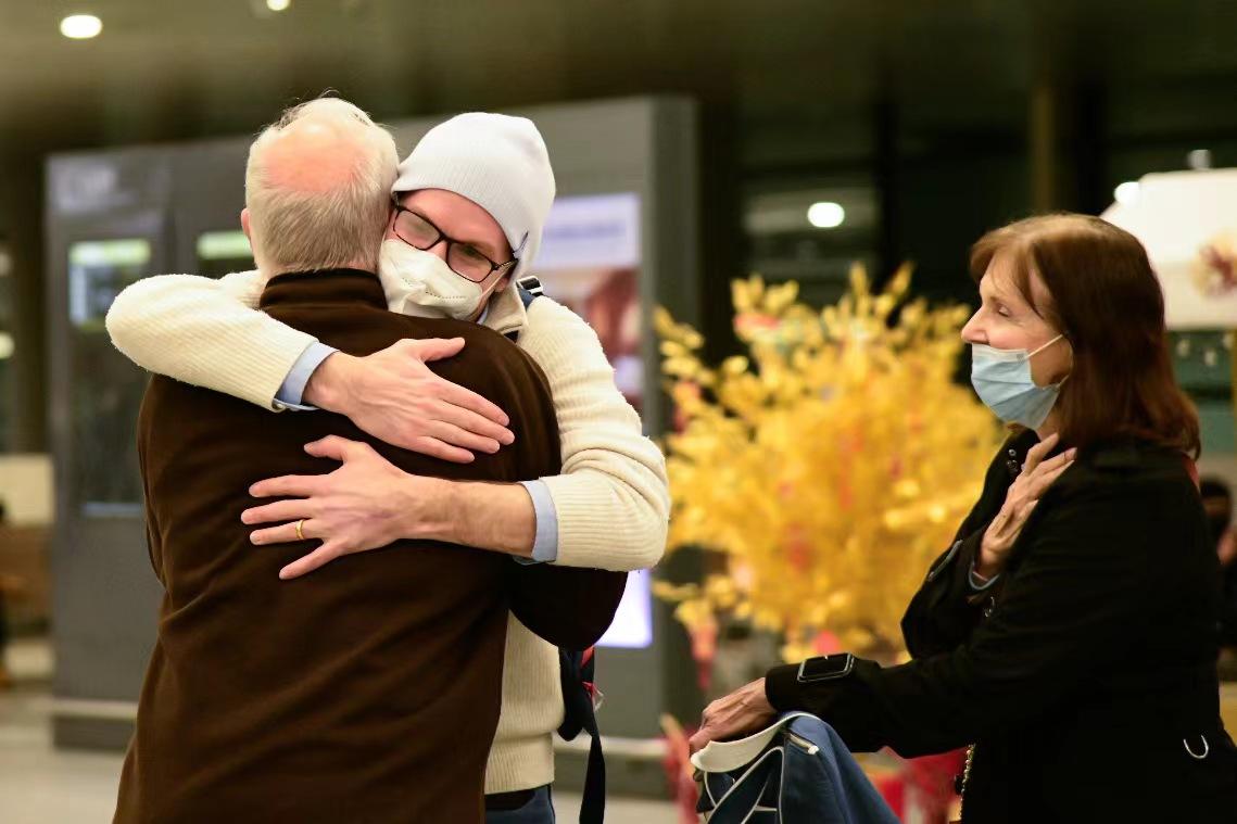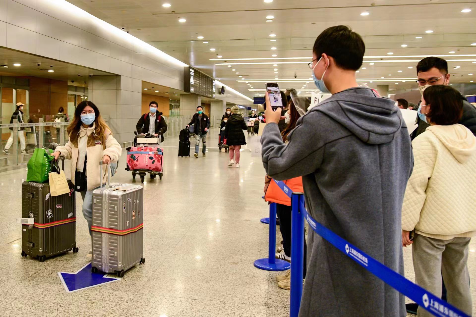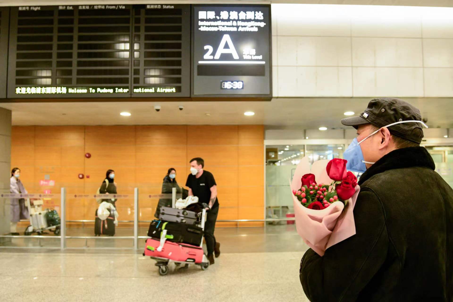 1月8日零时起,上海取消入境人员全员核酸检测及集中隔离,浦东国际机场的国际客运航班也恢复至疫情前原入境旅客到港流程工作。记者来到浦东机场A2国际、港澳台到达处,记录下了旅客与亲朋好友的温馨瞬间。