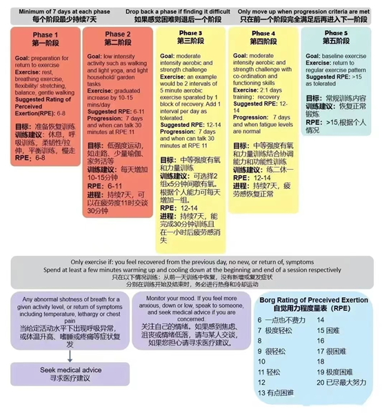新冠康复者恢复运动的建议(摘自BMJ杂志文章https://doi.org/10.1136/bmj.m4721)