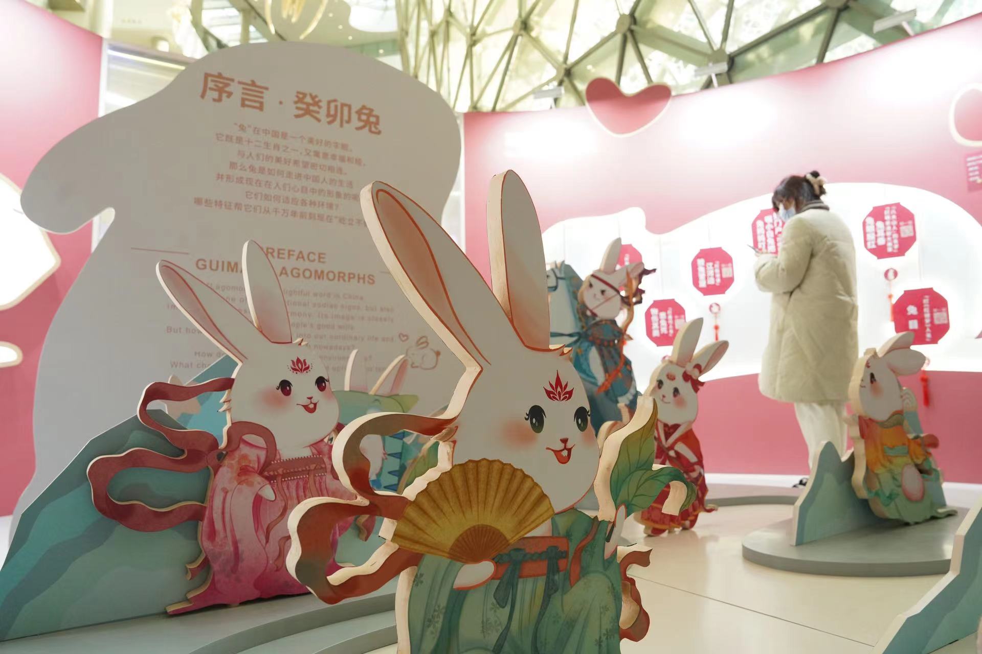 1月18日,“玉兔东升”兔年生肖展在上海自然博物馆B2中庭亮相。展览将传统文化与当下科学认知融为一体,从自然科学角度解读了兔的形象、分类、进化历史以及生存环境等,启发观众思考未来人类该如何与动物及大自然和谐相处。