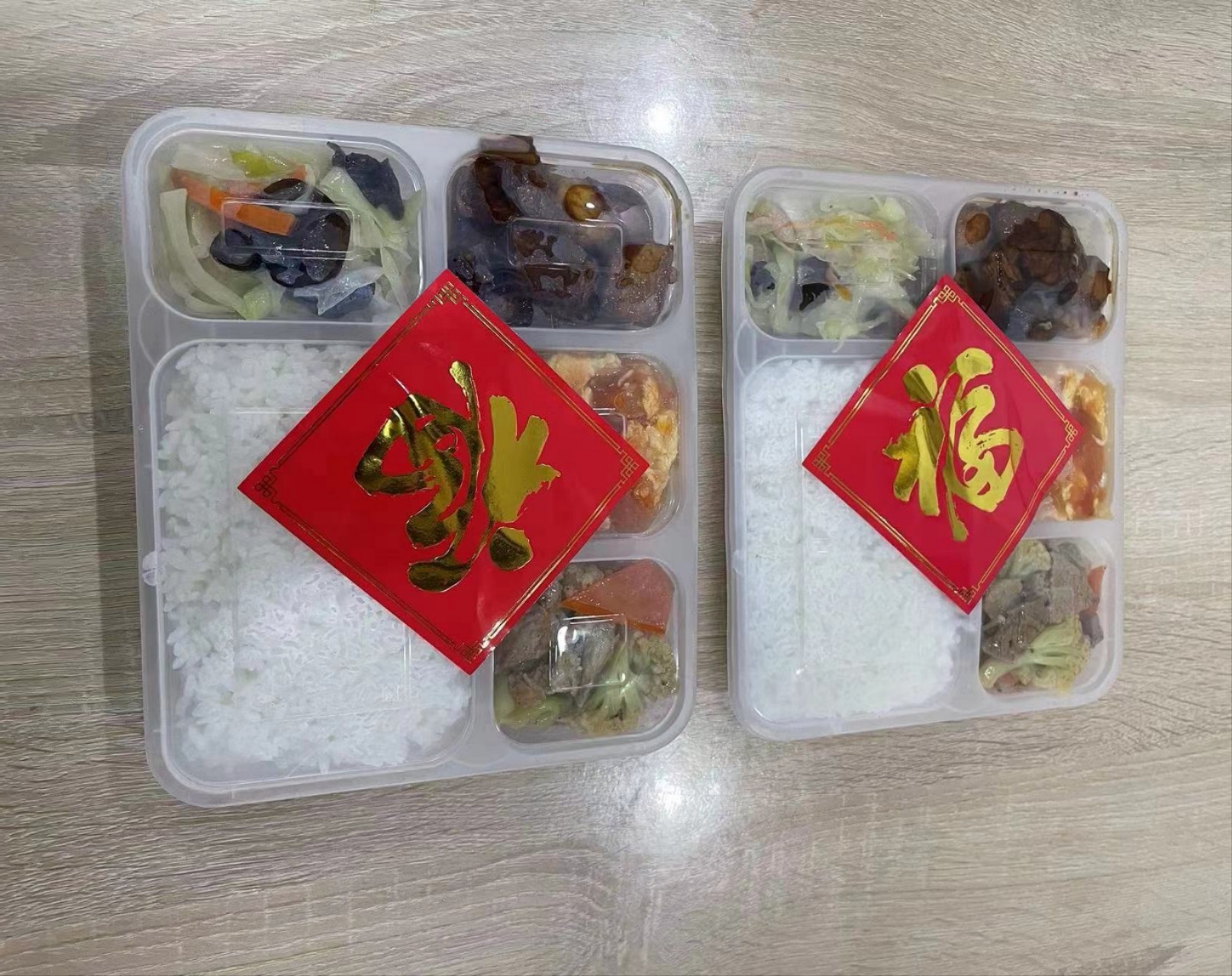 春节期间,嘉兴路街道为老助餐配送也“不打烊”。记者获悉,该街道节日期间送餐的餐食价格和平时一样,分成13元和18元两个档次。对于因部分送餐工作人员回乡过年等人员减少情况,为了能让有需求的老年人能吃上可口饭菜,社区食堂特别安排了内部工作人员为老人送餐。同时,为了保障老年人的身体健康,配送员事先同老人沟通好将餐食放置指定地点,配送采取“零接触”的方式。大年初一,每一份餐盒上都贴上了一个福字,祝愿每一位老人在新的一年里可以健康长寿万事如意。