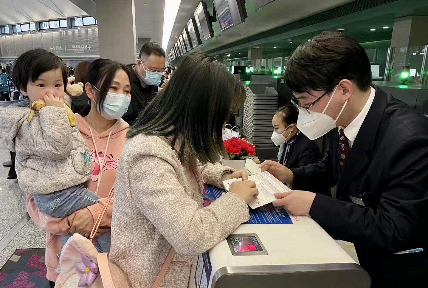 “今天我们一家四口去香港,特别开心。”复航首日,首位办票旅客肖理君告诉记者,她手里抱着的是自己的外甥女,两岁的孩子第一次坐飞机外出。