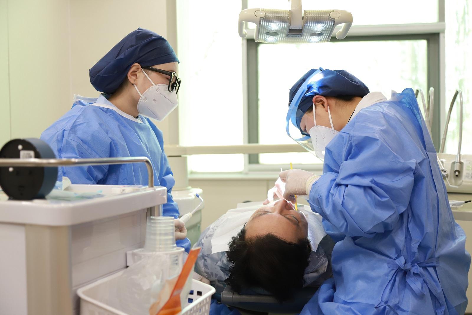 上海市民正在接受种植牙治疗。沪申五官科医院供图