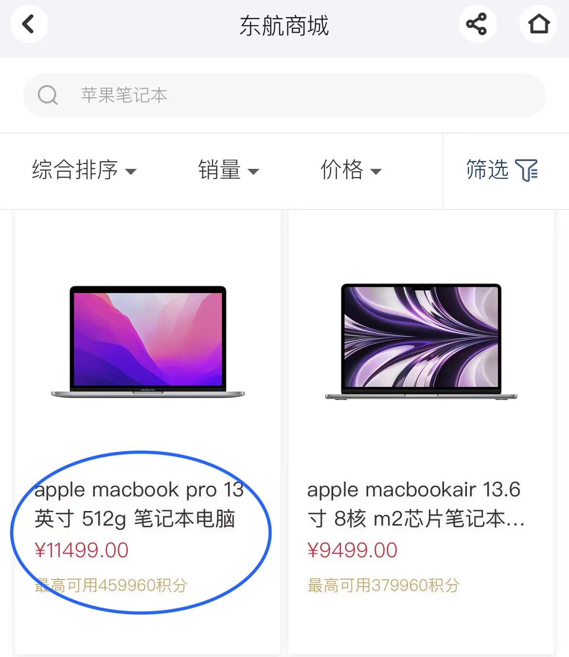再如,在东航商城显示,一台内存为512G的13英寸Apple笔记本MacBook Pro,最多可使用459960分。这也意味着,按照现有兑换规则,胡兵的50万积分至少可以兑换一台高配苹果笔记本电脑。如果真的一夜清零的话,的确损失不少。