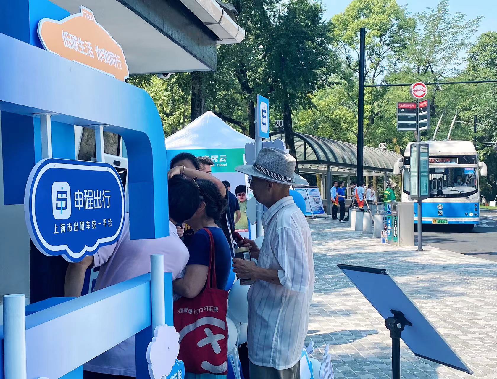 打造“公共交通+个性化出行”的组合方案。7月14日,在中山公园北门,上海市出租车统一平台“申程出行”邀请市民打卡互动“绿色宝藏地”,体验公交枢纽场景下的无感出行,倡导更环保的出行理念。