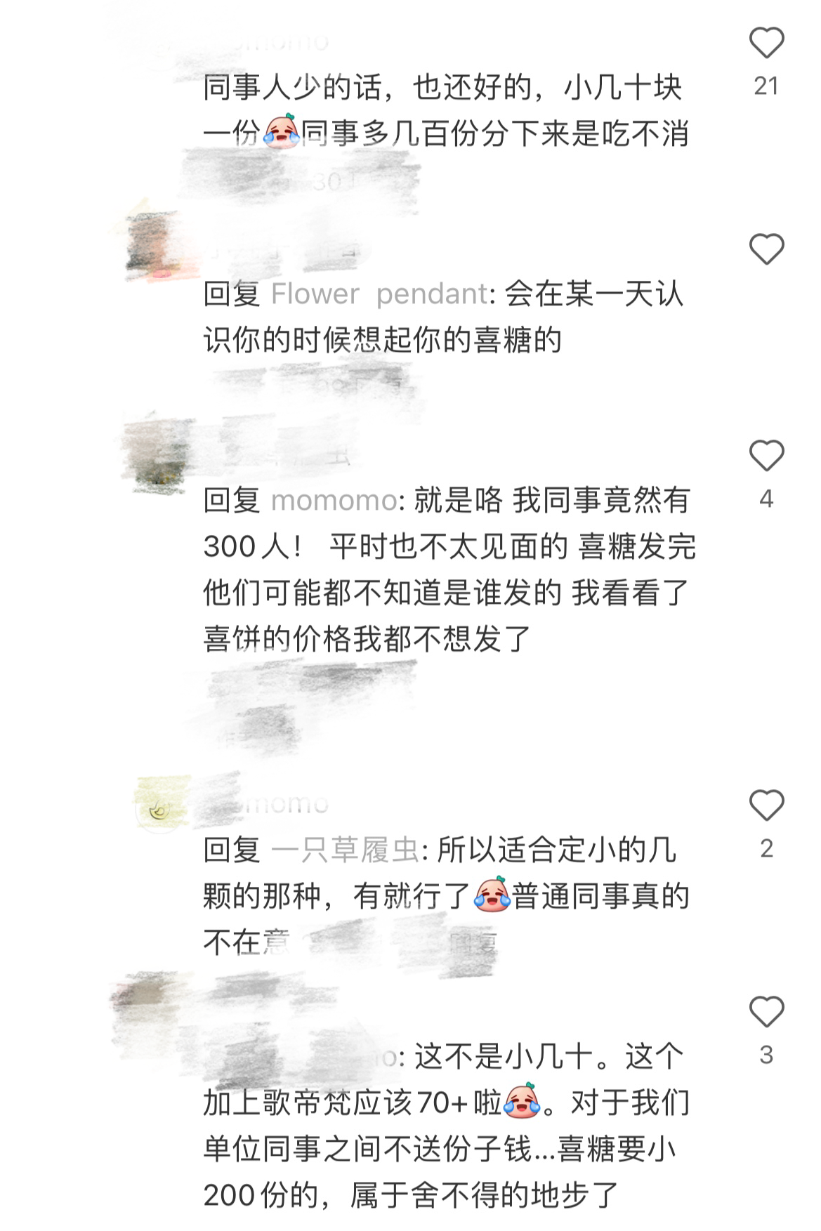年轻人在社交媒体上讨论送喜糖的压力。网络截图