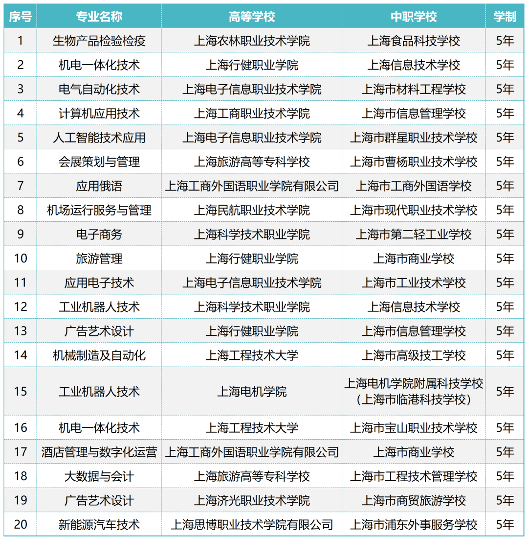记者了解到,2024年上海增设上海食品科技学校与上海农林职业技术学院联合举办的生物产品检验检疫等20个中高职教育贯通培养模式专业。学生学籍管理和收费标准按相应规定执行,前3年按中职校有关规定管理,高职阶段按高职院校有关规定管理。