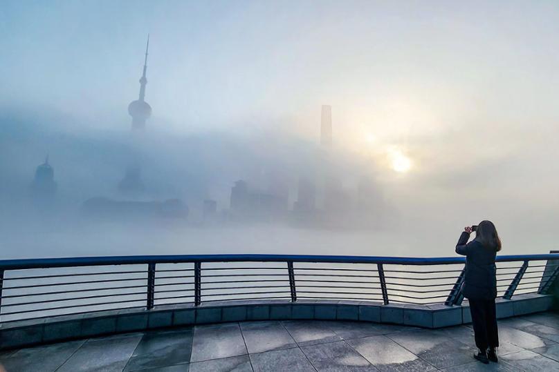 头图为清晨,上海外滩出现浓雾,吸引路人驻足。 劳动报记者 颜筱依 摄影