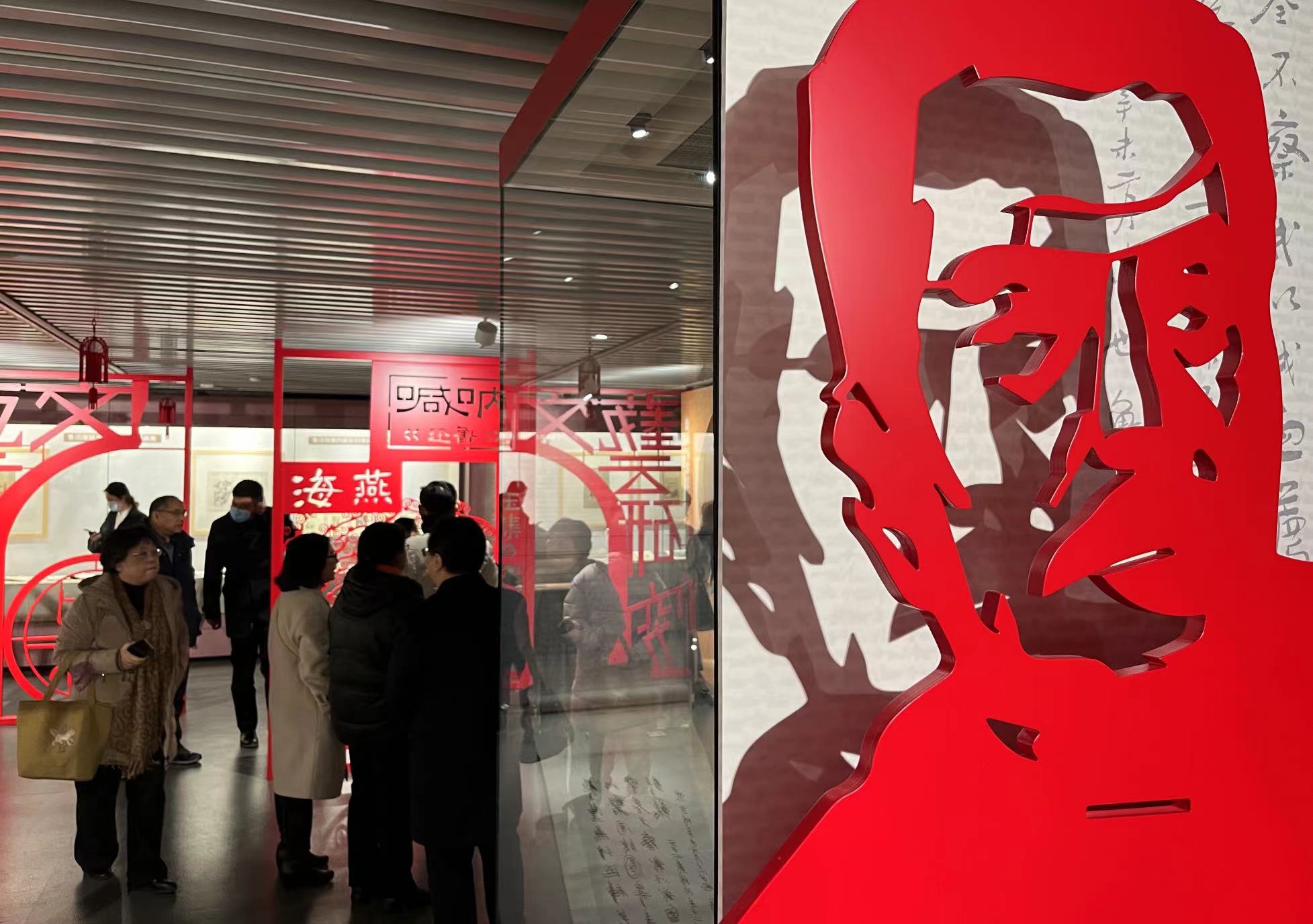 展览的策展人、中共一大纪念馆陈列研究部助理馆员张丽芳介绍,虽然展览的提纲和展品来自北京鲁迅博物馆,但展出空间上的设计都由中共一大纪念馆来完成,颇具巧思。例如展头精心选取木刻版画独特的刻痕纹理,不仅呼应相伴鲁迅一生的“艺术情结”,更彰显鲁迅透过艺术贡献迸发出的思想张力,凸显力量感与生命力;展厅二楼的大型镂空雕刻装置,将《海燕》《呐喊》等鲁迅作品中具有代表性的场景、人物、主题提炼组合,呈现具有立体感和透视感的光影效果;结尾处设置AI互动拍照和华容道拼图,融知识性、艺术性、科普性、娱乐性于一体,让观众窥见鲁迅的世界中除严肃文学外,更加丰富多彩的艺术人生。
