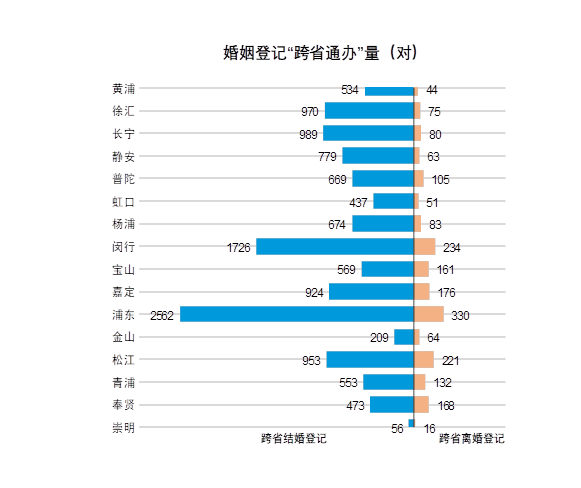 2023年,全市共办理跨省婚姻登记15080对。其中,跨省结婚登记13077对;跨省离婚登记2003对。全市跨省婚姻登记惠及30个省、自治区、直辖市户籍的30160名当事人。