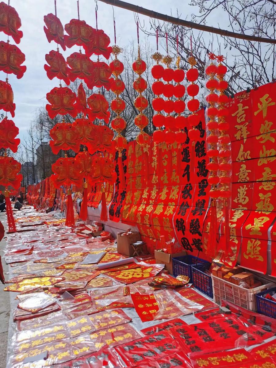 红红火火的春联摆满整条街,将年味儿瞬间拉满。劳动报记者马亚会 摄影