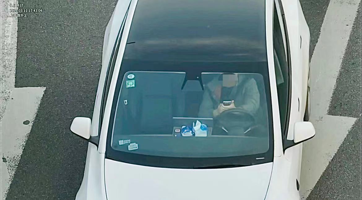 无人机在视频巡逻时发现了开车浏览电子设备的驾驶员。视频截图