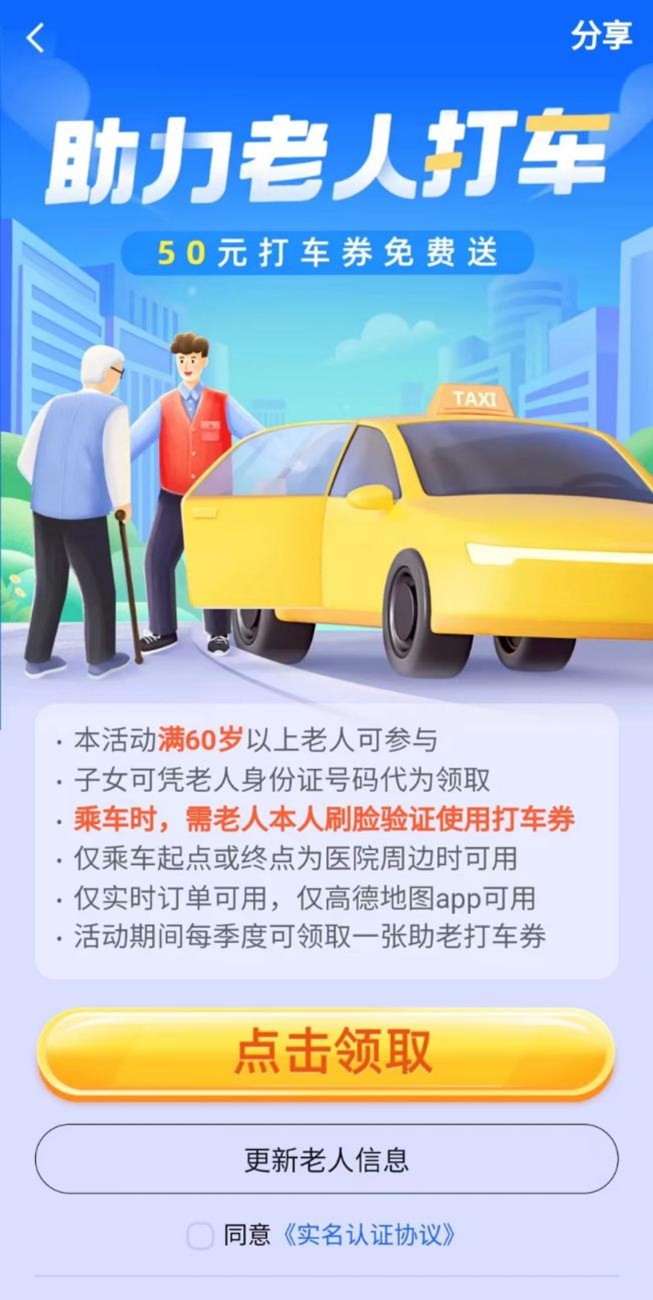 高德方面表示,用户在领取优惠券时可在领取页面查看规则,在领取后可在钱包卡券里查看。“为了方便老年人使用,当老年人的账户中有助老券、且符合使用规则时,平台会自动识别,直接显示优惠后车费,行程结束后也会自动使用助老券减免车费。当账户中没有助老券,或助老券不符合使用规则时,平台会显示正常预估车费。”