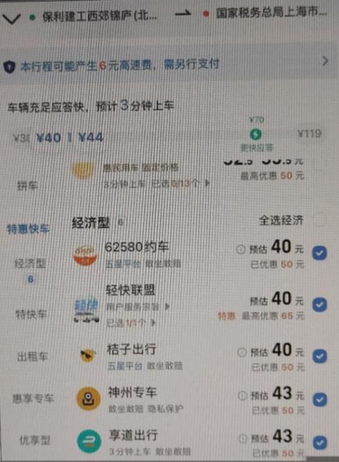 老张今年65岁,在朋友的推荐下他申领了高德助老打车优惠券。他告诉劳动报,今年1月8日,他从嘉定前往青浦,为了使用50元助老优惠券,特地进入高德打车的助老打车界面下单,但却差点“多付了一倍钱”。