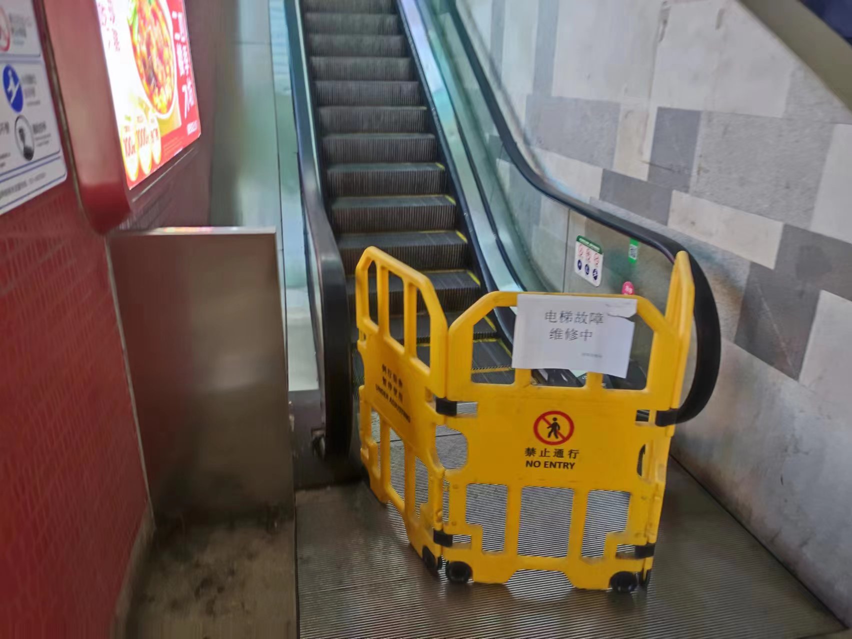 2号线南京西路地铁站3号口处的自动扶梯显示“故障维修中”。吴泽顺 摄影