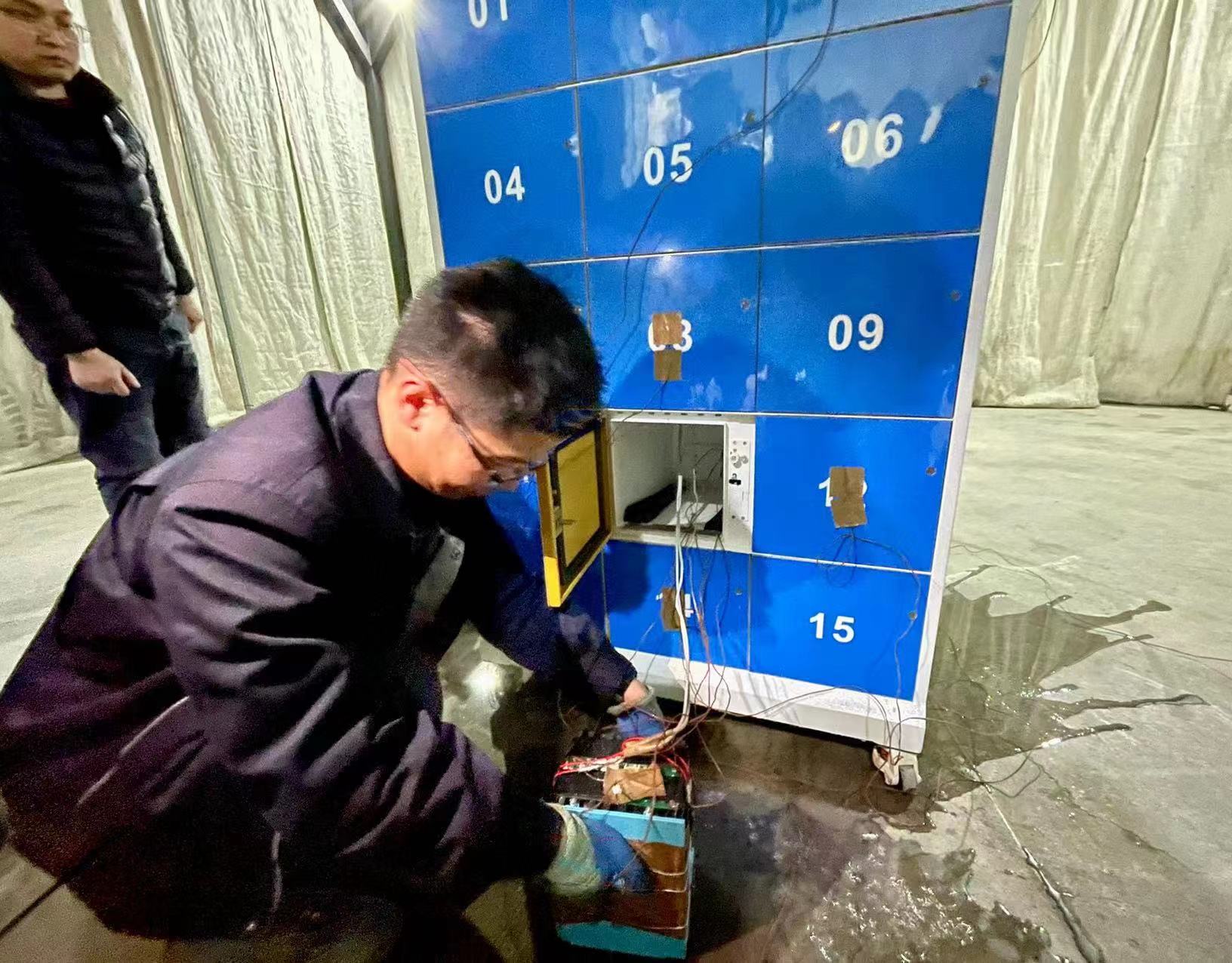工作人员正在对市场上的换电柜进行安全性能检测。劳动报记者 包璐影 摄影