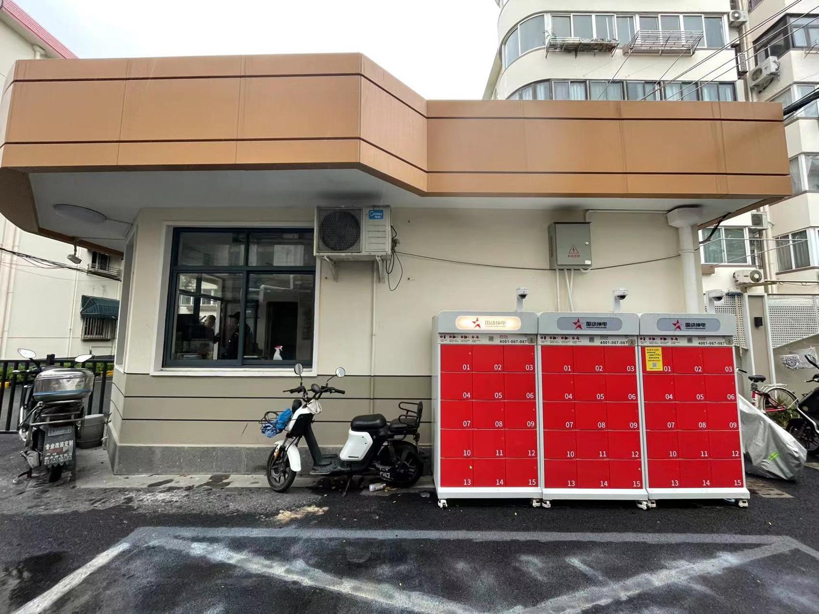 田林花苑门口安装投入使用的换电柜。劳动报记者 包璐影 摄影