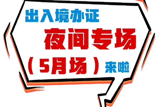 考虑到有暑期出境需求的市民需提前办妥出入境证件,出入境管理局决定五月连续两周在民生路接待大厅加开两场周五夜间办证专场。