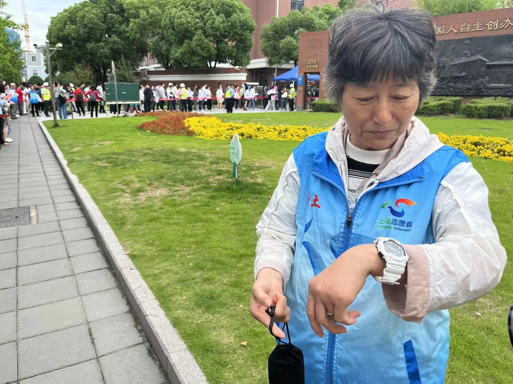家长连连道谢,还将考生的电子手表戴在了陆阿姨的手腕上,约定考完试来换表。“其实不要紧,一个手表而已,考生要用,拿去。”陆阿姨爽气地说,“看着孩子们顺顺利利进考场,我也放心了。”