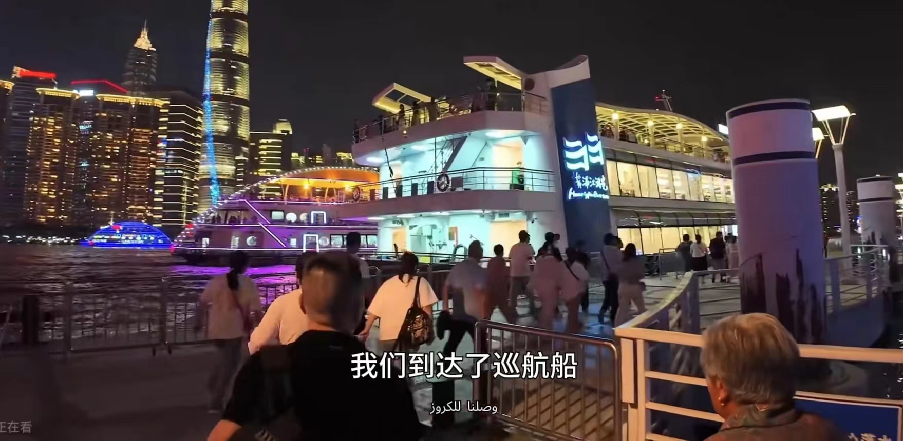 来自沙特的博主通过乘坐游船欣赏了夜景。视频截图