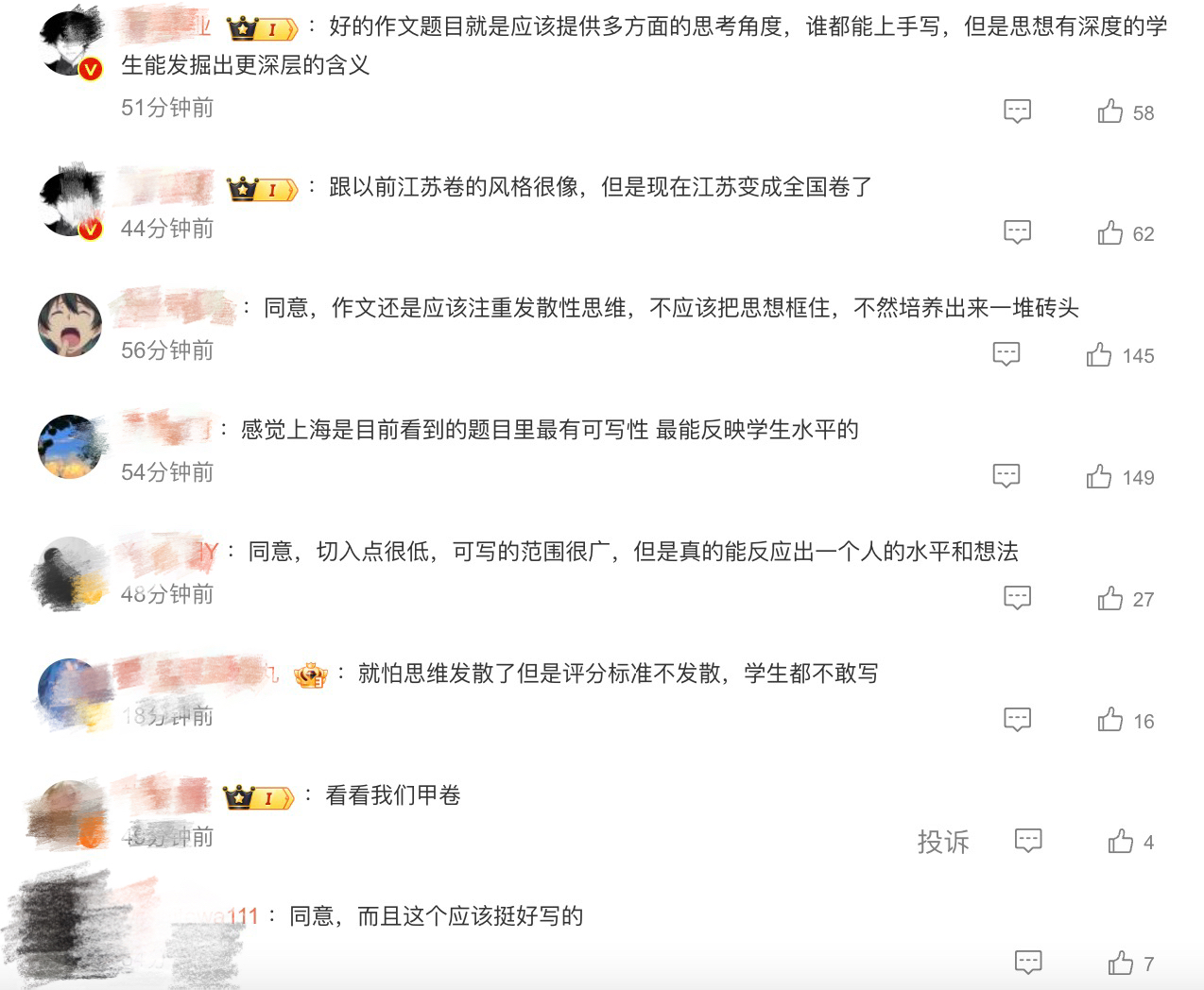网友讨论作文题目。网络截图