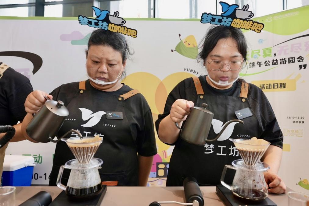 特别的咖啡师制作手冲咖啡。虹口残联供图