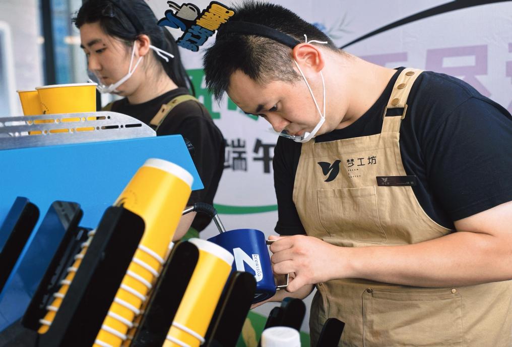 特别的咖啡师制作拿铁拉花。虹口残联供图