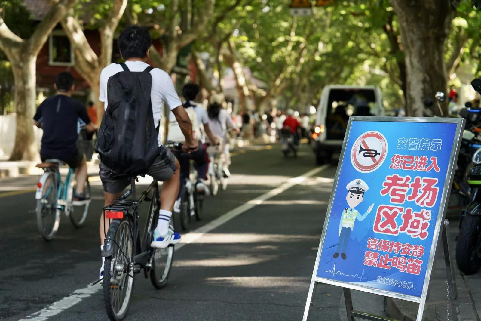 考场区域设置了提醒牌。劳动报记者 贡俊祺 摄影