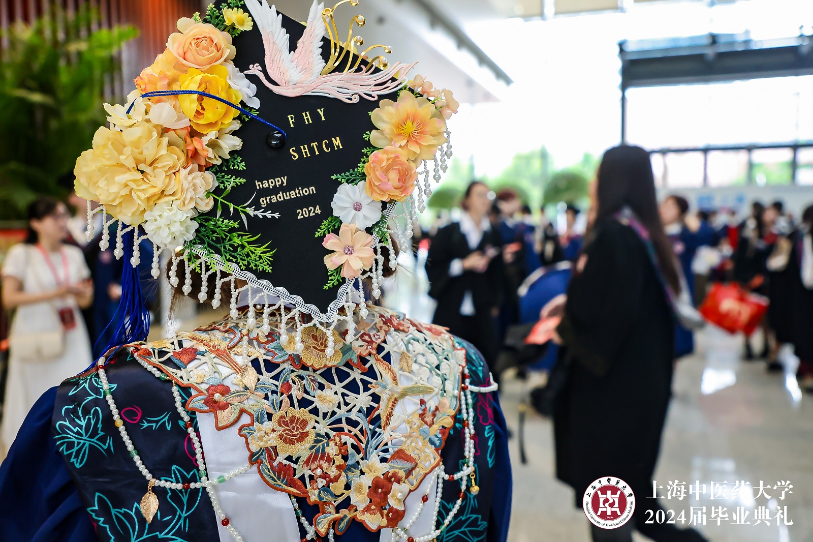 为优秀毕业生颁奖颁证、正冠拨穗。上中医供图
