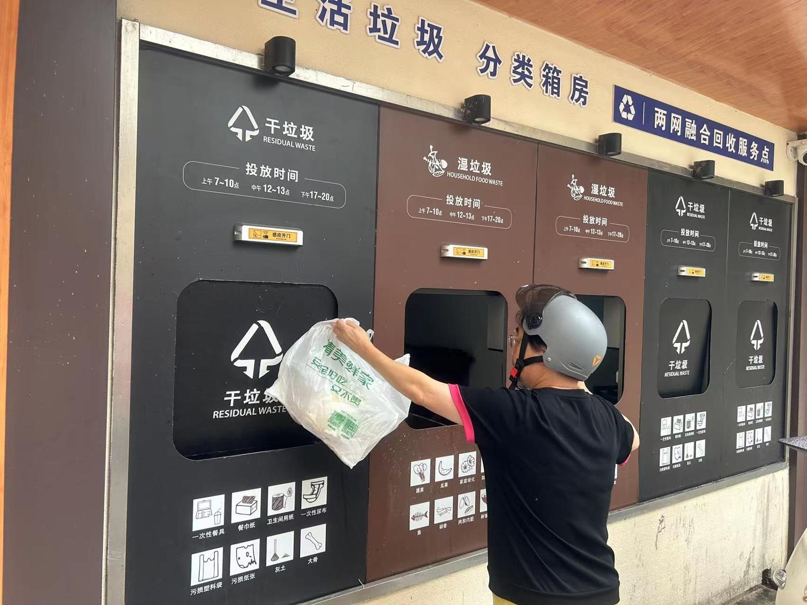 “去年,我们小区结合老旧小区改造,在征求居民意见后,建设了新的垃圾厢房,显著提升了小区的人居环境。”孙嵘捷介绍说,全封闭的垃圾厢房不仅有除臭设施,还配备了洗手盆,而且十分智能,“如果居民将分好类的干湿垃圾,在垃圾厢房投放时投错了地方,厢房的喇叭会主动提醒;同时保洁人员也会及时予以纠正。”