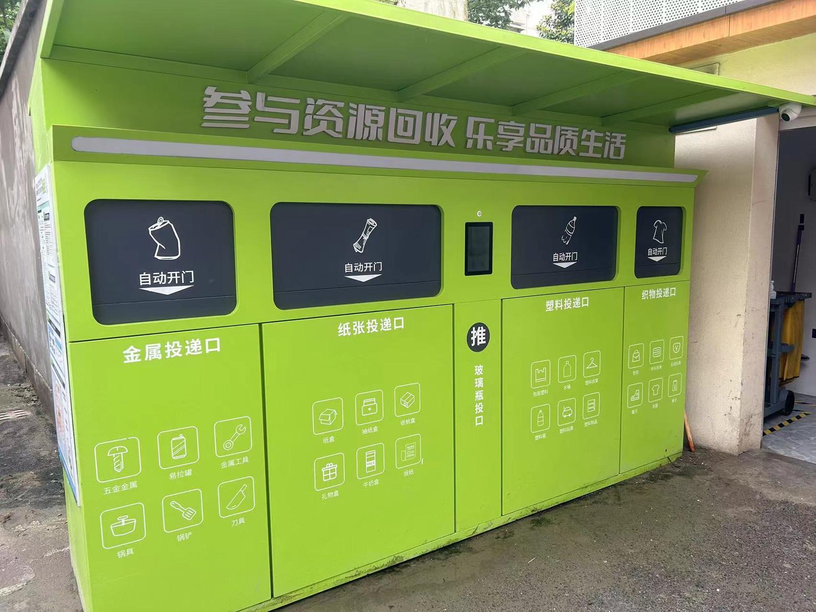 同时记者在现场看到,小区还设有“玻、金、塑、纸、衣”五分类智能回收箱,可24小时进行“回收”,居民只要扫码再将物品放置于指定的入口即可,推进可回收物精细化分类。此外还配置了有害垃圾精细分类箱,实现“过期药品、化学制剂、有毒制剂”安全存放。
