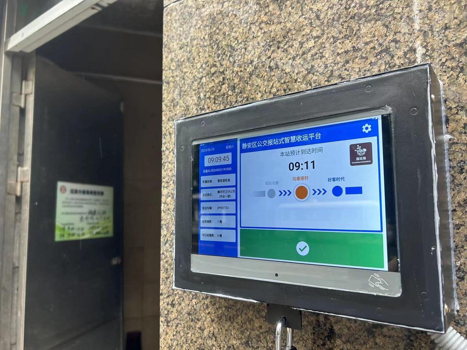 显示屏预报清运车辆抵达时间。劳动报记者 胡玉荣 摄影