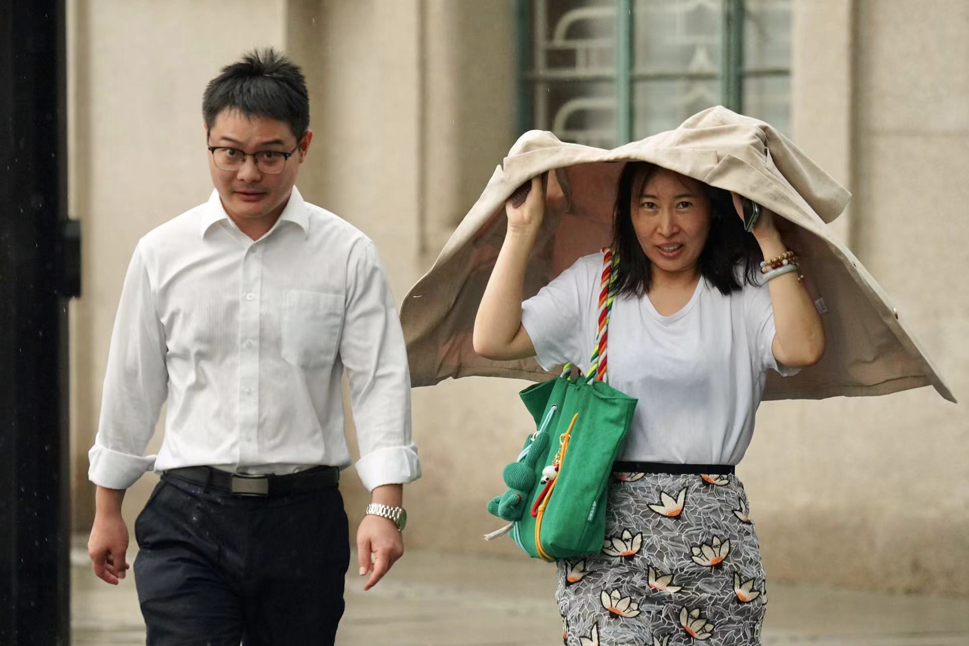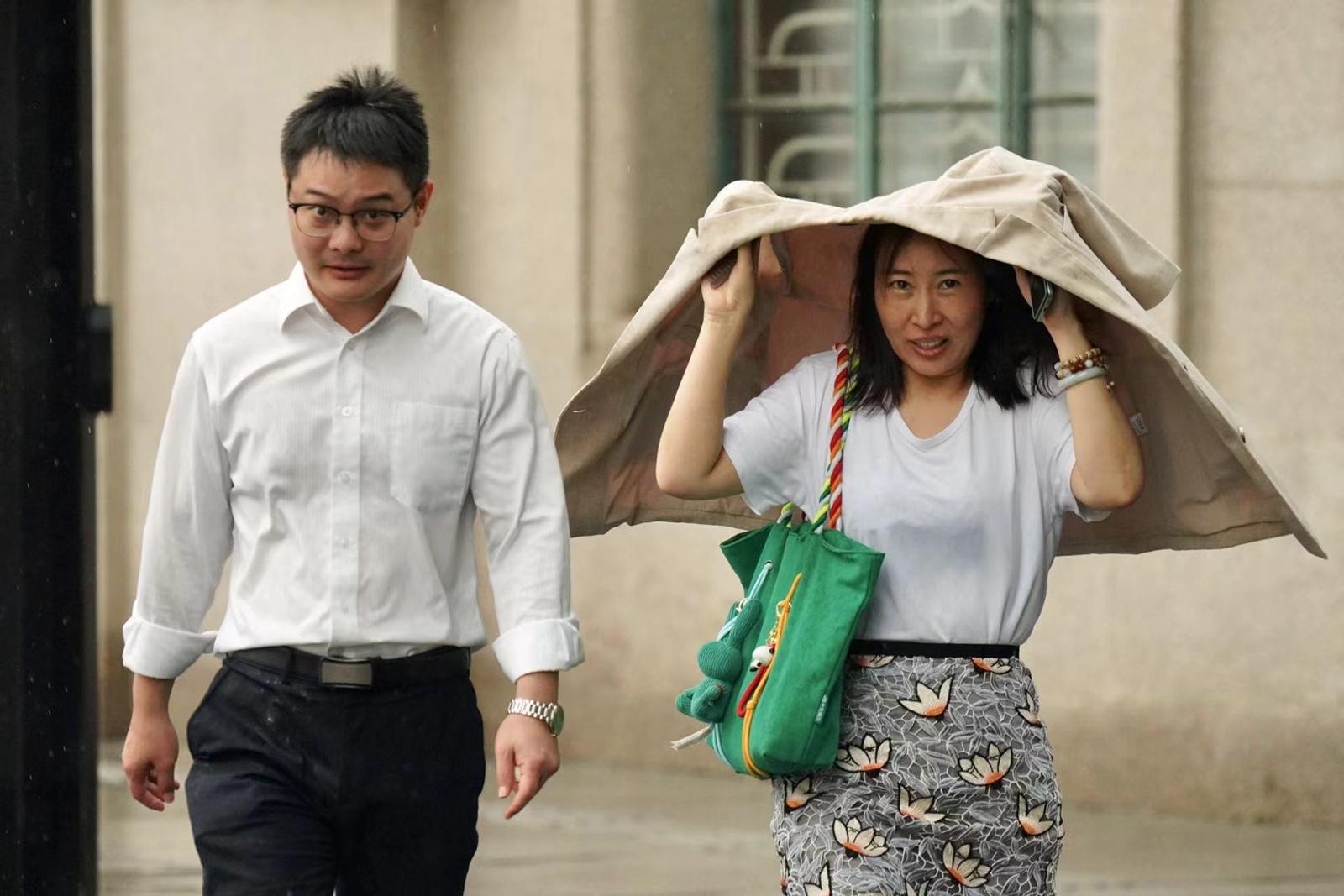 未带伞的市民有些狼狈。劳动报记者 贡俊祺摄影