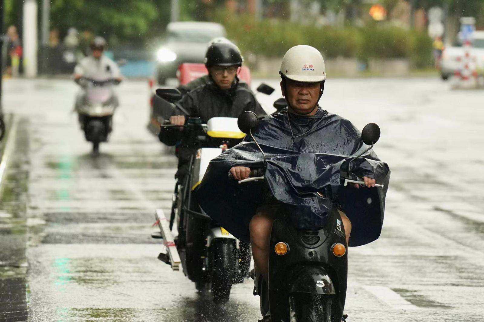 市民在雨中骑车。劳动报记者 贡俊祺摄影
