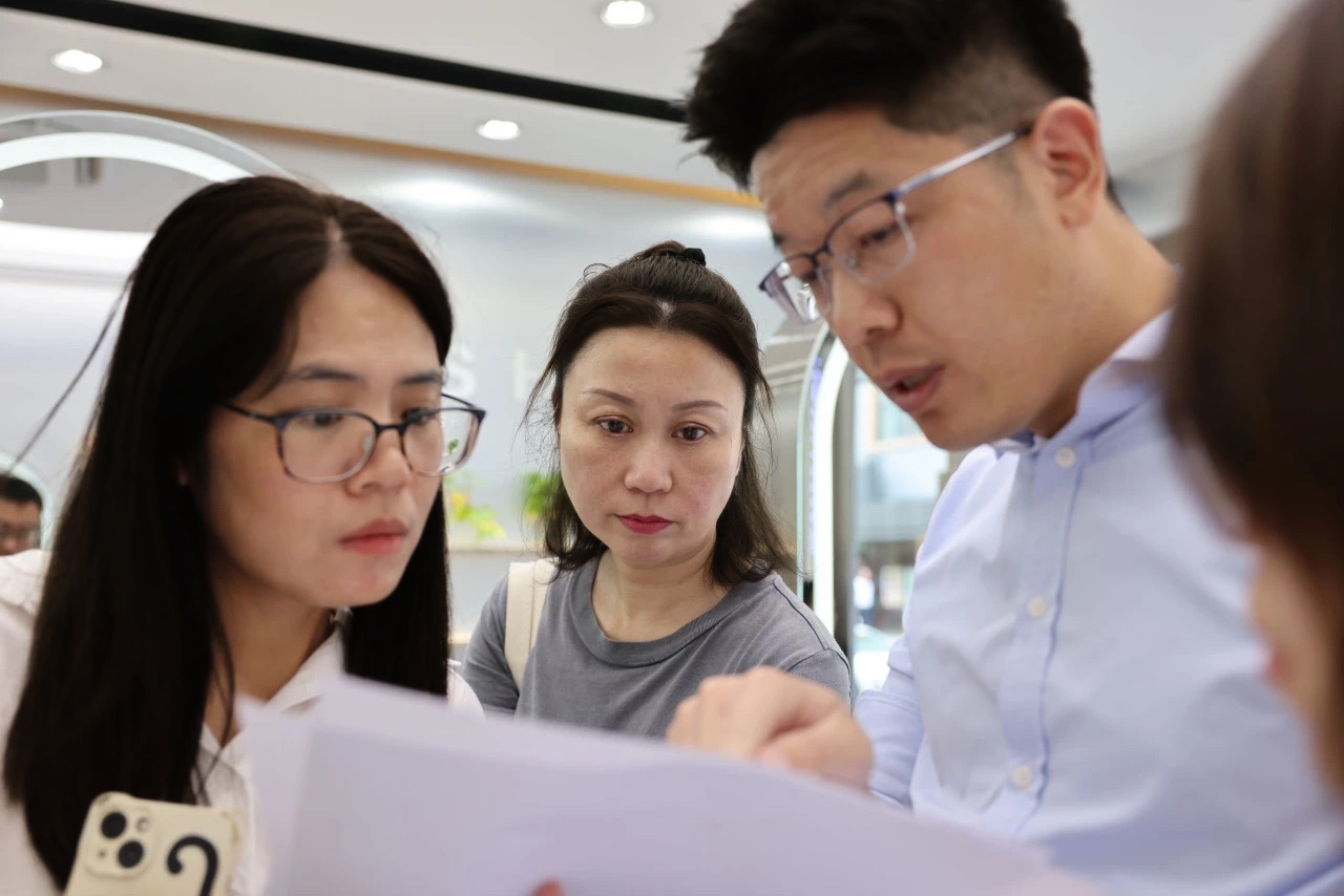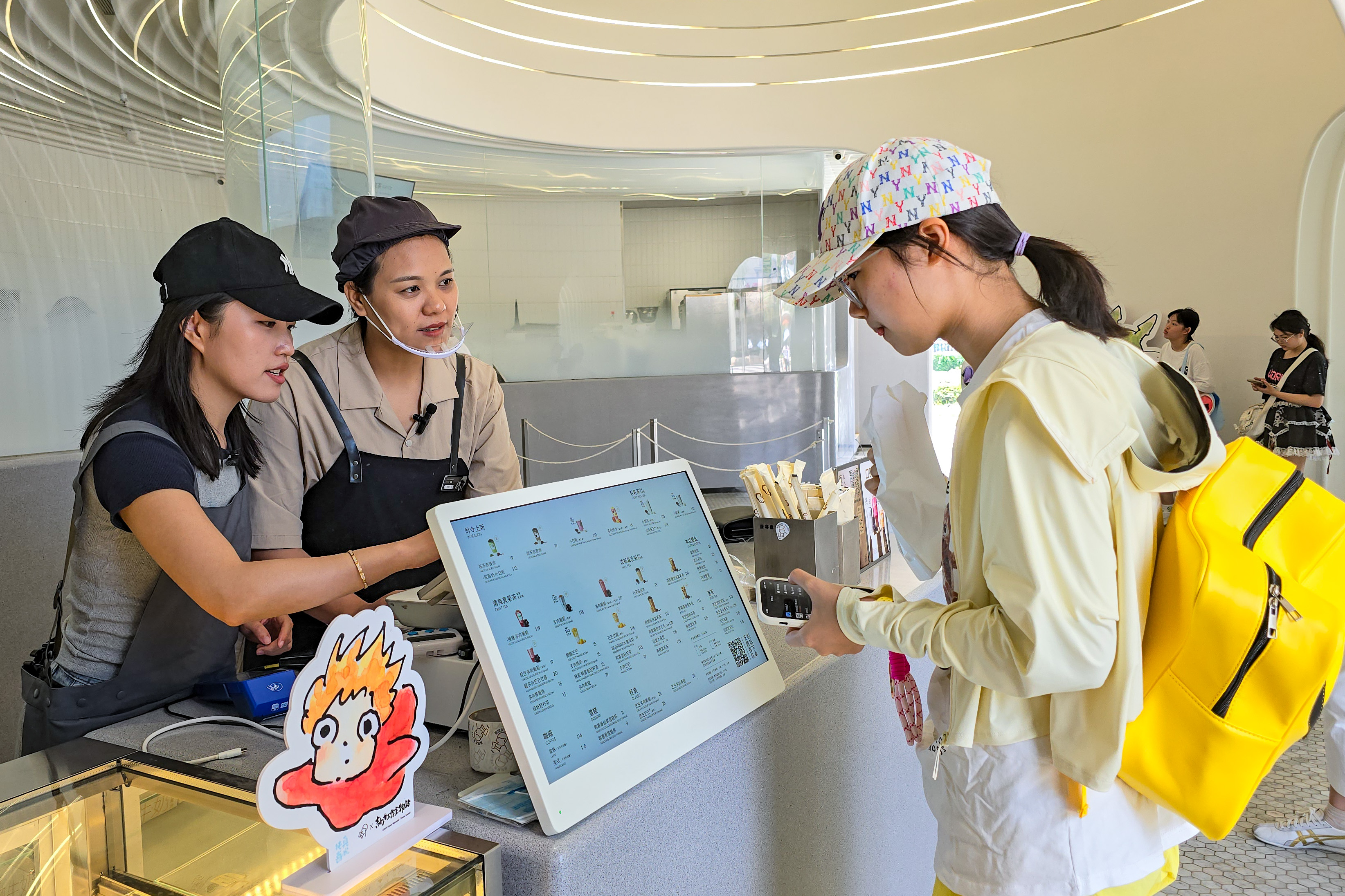 劳动报记者陈宁(左)体验茶饮师忙碌的一天工作。劳动报记者 颜筱依 摄影