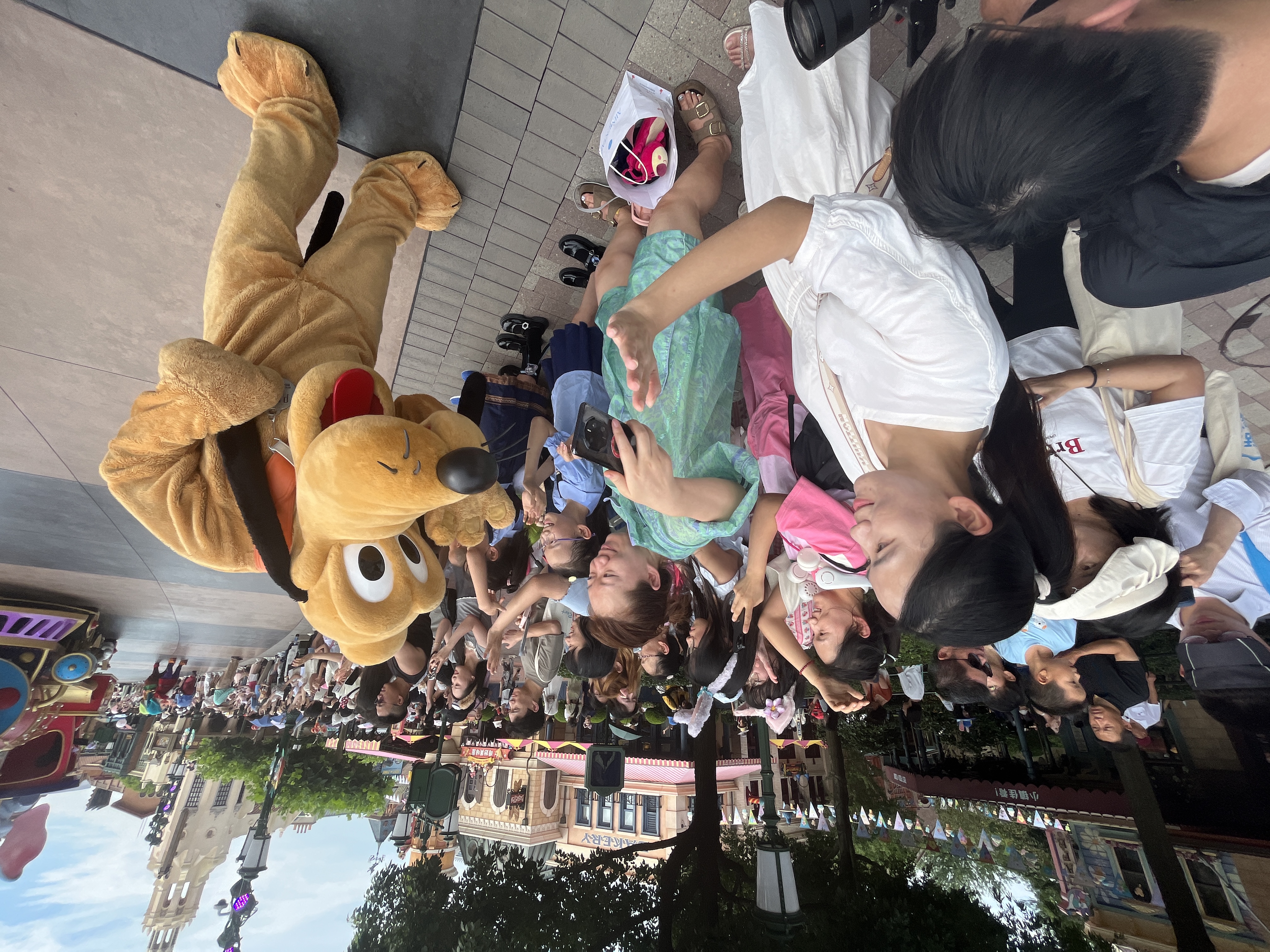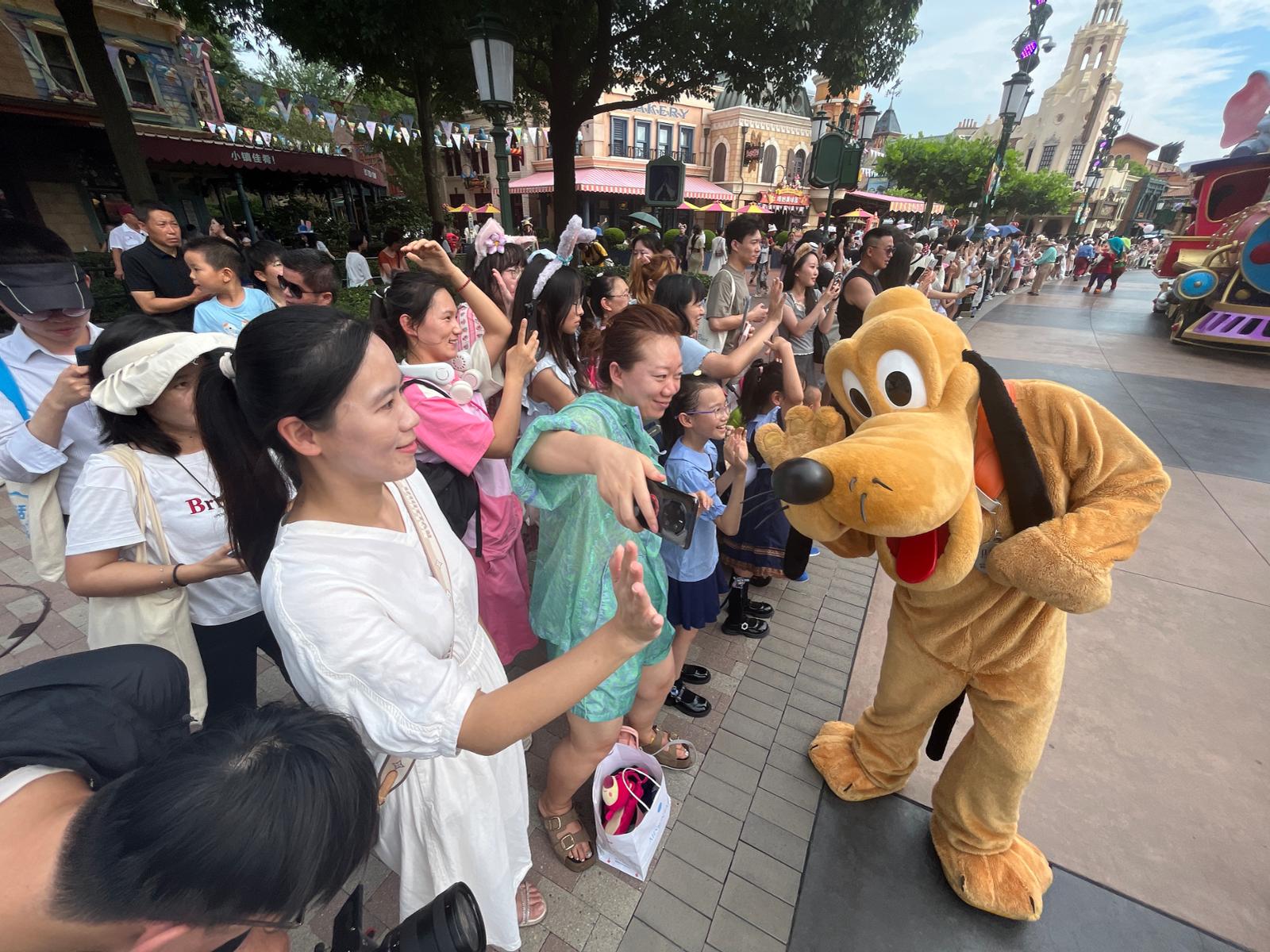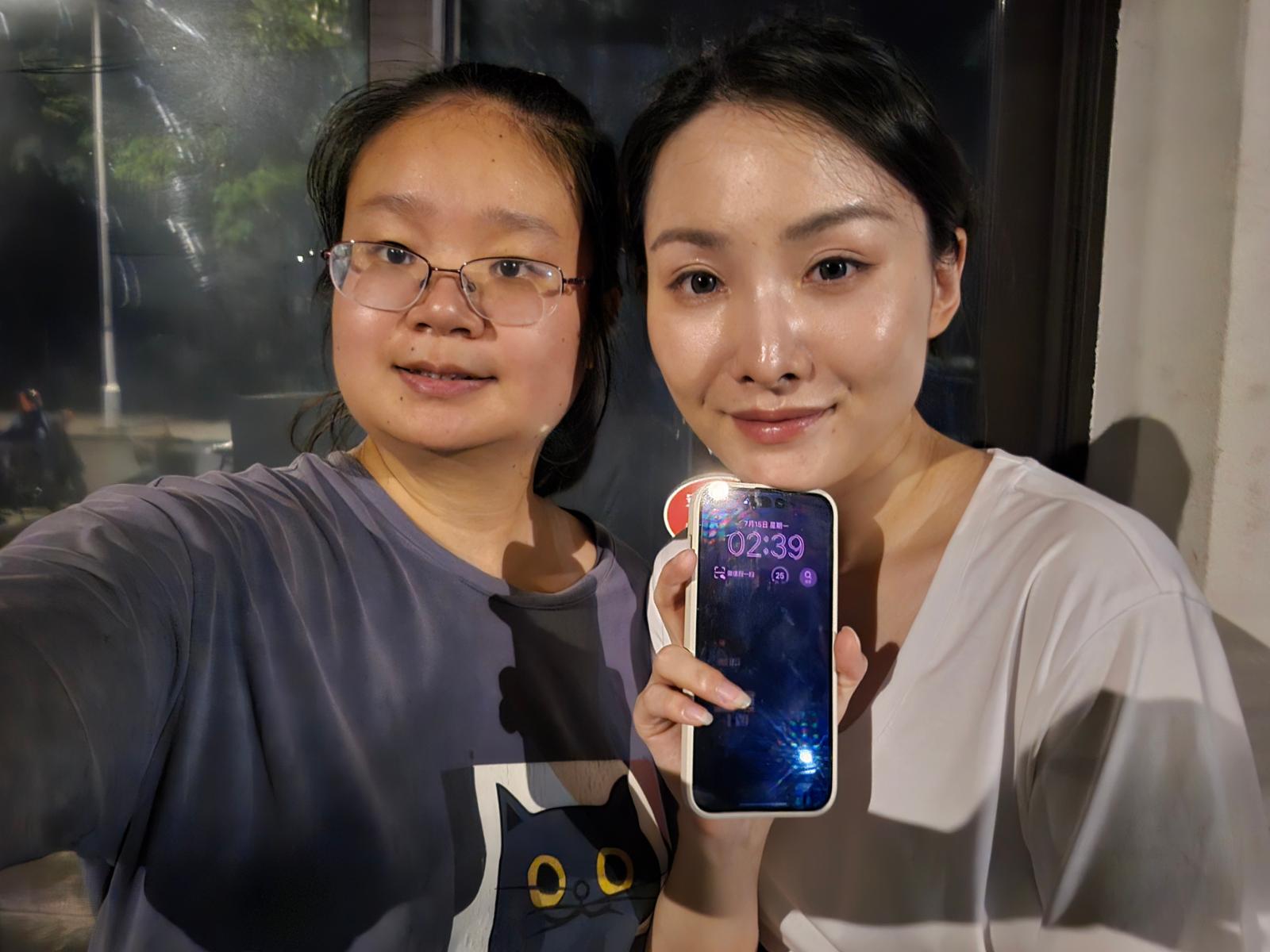 劳动报记者叶佳琦(左)直击迪士尼花车巡游团队战高温。劳动报记者 贡俊祺 摄影