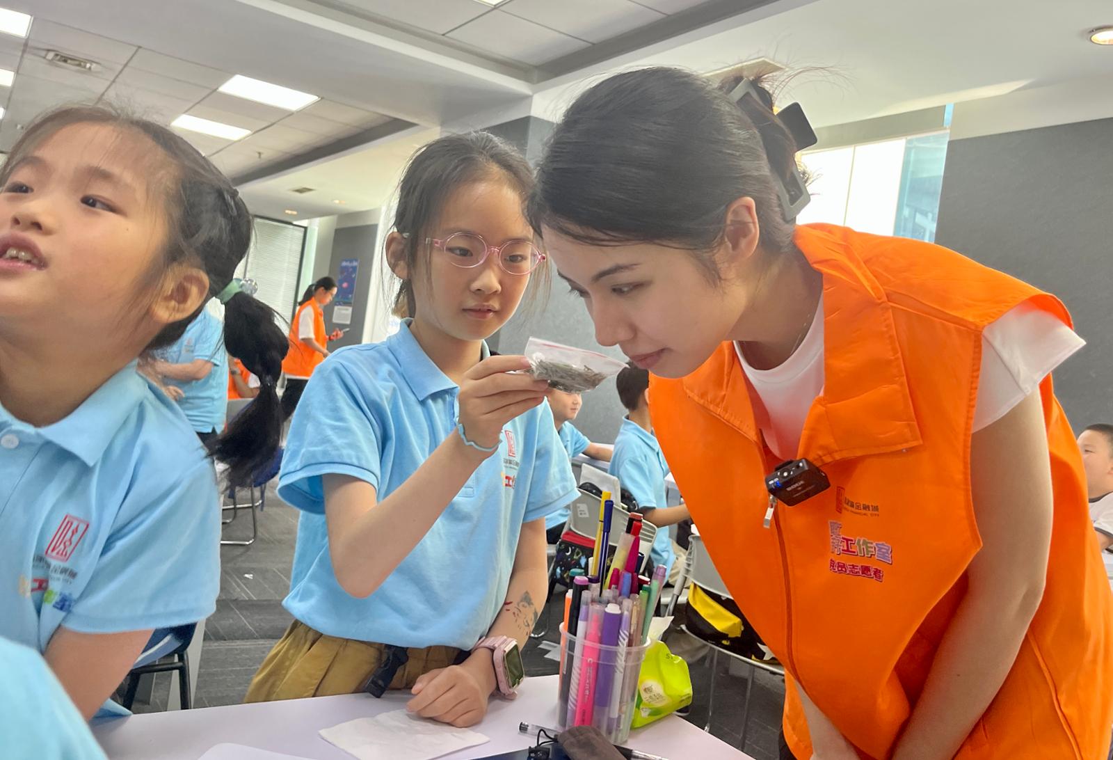 劳动报记者王嘉露(右)在职工亲子工作室担任志愿者“带娃”。劳动报记者 贡俊祺 摄影
