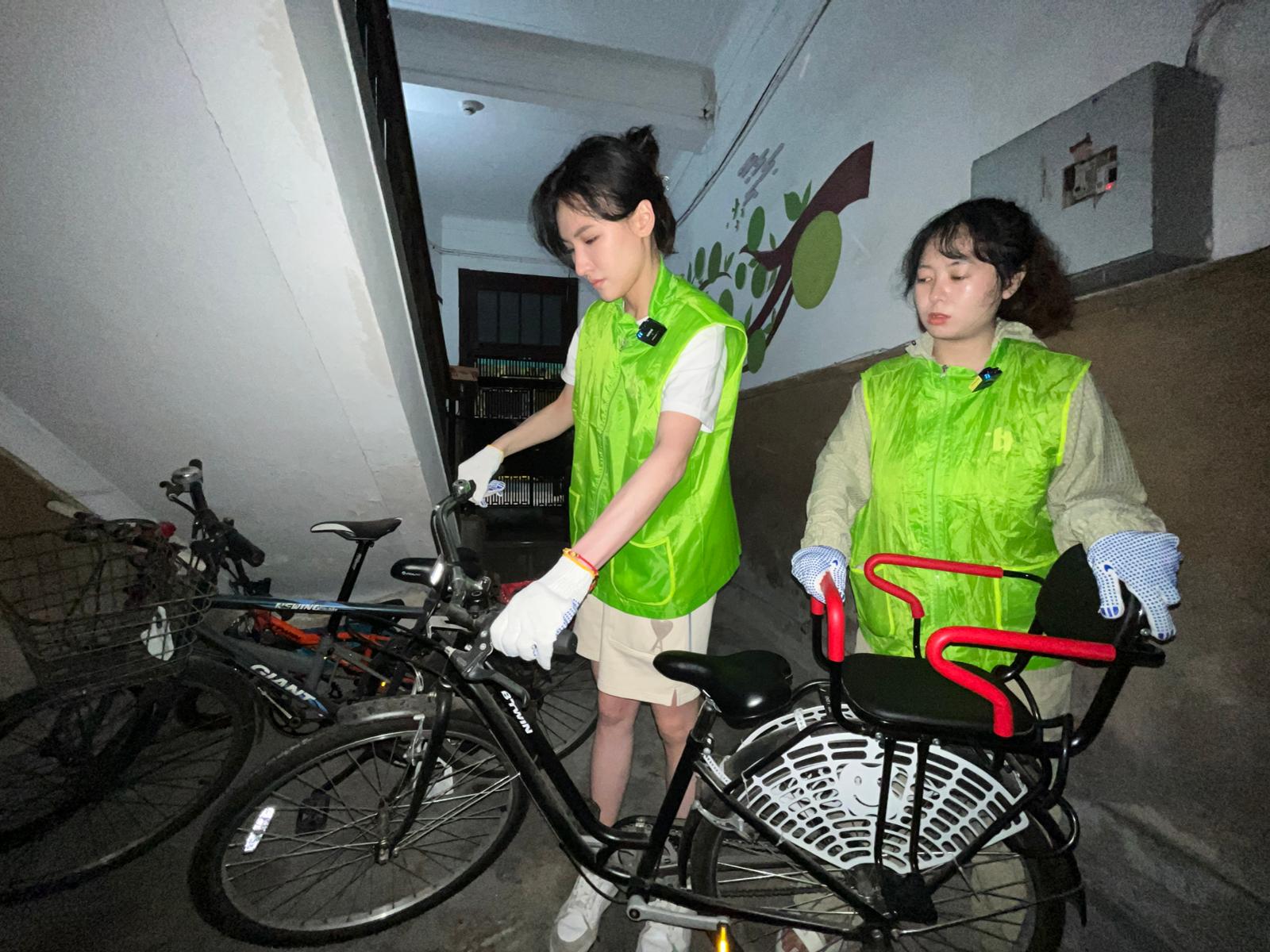 劳动报记者李美慧(右)跟随静安寺街道海园居委会社工高璐燕体验一线社工的工作。劳动报记者 贡俊祺 摄影